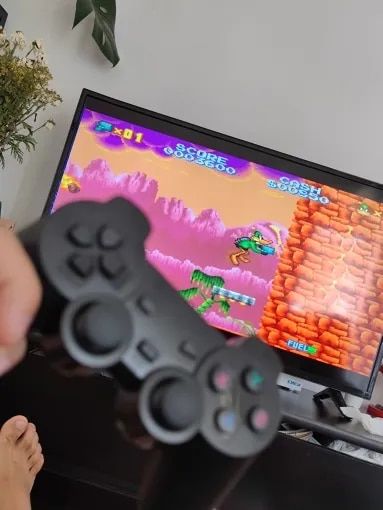Revive tu infancia en HD, guarda tus partidas y comparte momentos únicos con familia y amigos. Solo conecta a cualquier pantalla HDMI y empieza a jugar.